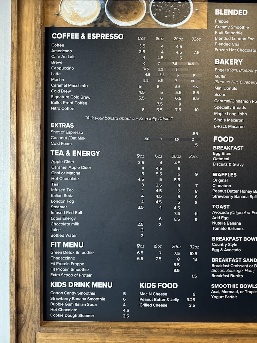 The menu showcases a variety of both hot and cold beverages. From the robust London Fog to the refreshing Matcha Tea, there’s something for every palate. Don’t miss out on their Apple Cinnamon Scone or White Chocolate Raspberry Scone for a perfect pairing with your drink.